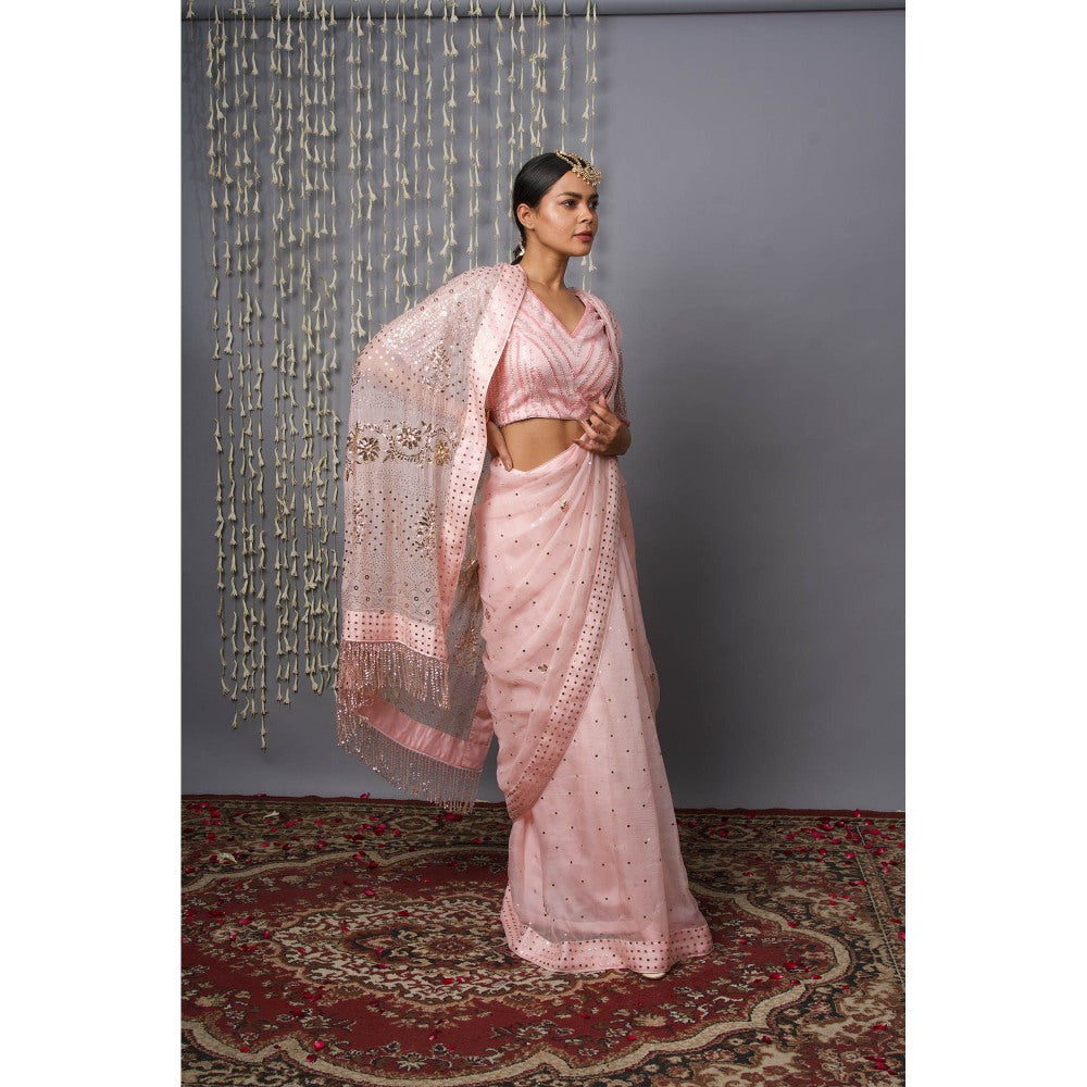 Shweta Dabas Pink Pure Silk Organza Saree with Stitched Blouse and Petticoat