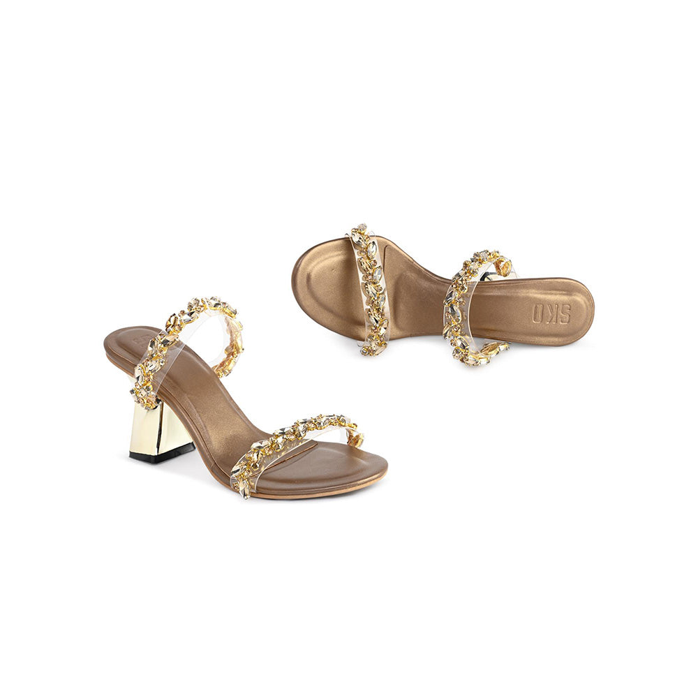 Description : These Stunning Open Mules Are Crafted From Clear Pvc with Dazzling Embellishment That Will Catch Everyone's Eye. With 4Mm Padding and A 3-Inches Twisted Heel, You'll Experience Both Comfort and Style, While The Sole Sheet Ensures Durability. These Heels Are Appropriate for Any Festive Occasion.