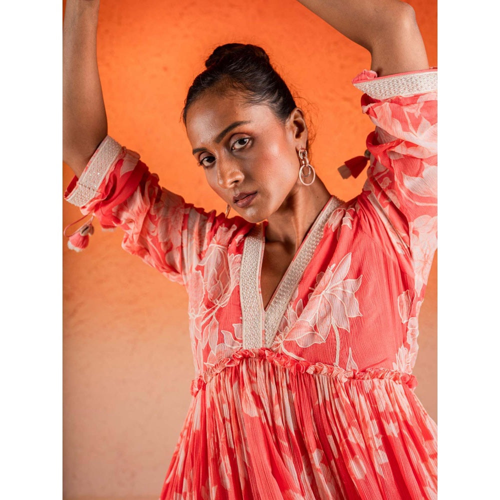 Sshilpa Samriya Georgia Peach Floral V Neck Mini Dress