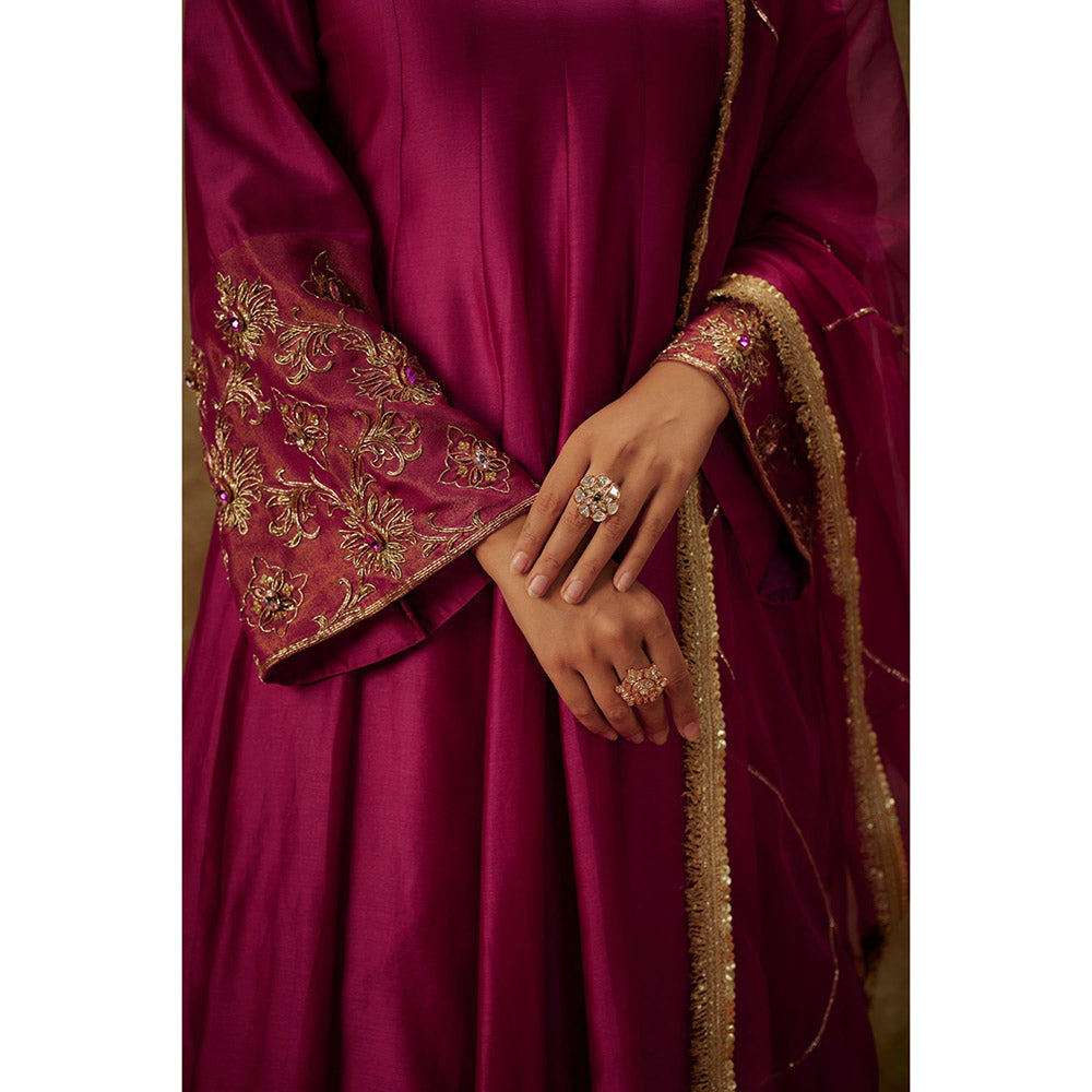 THE AARYA Sahar Magenta Embroidered Anarkali Kurta with Palazzo and Dupatta (Set of 3)
