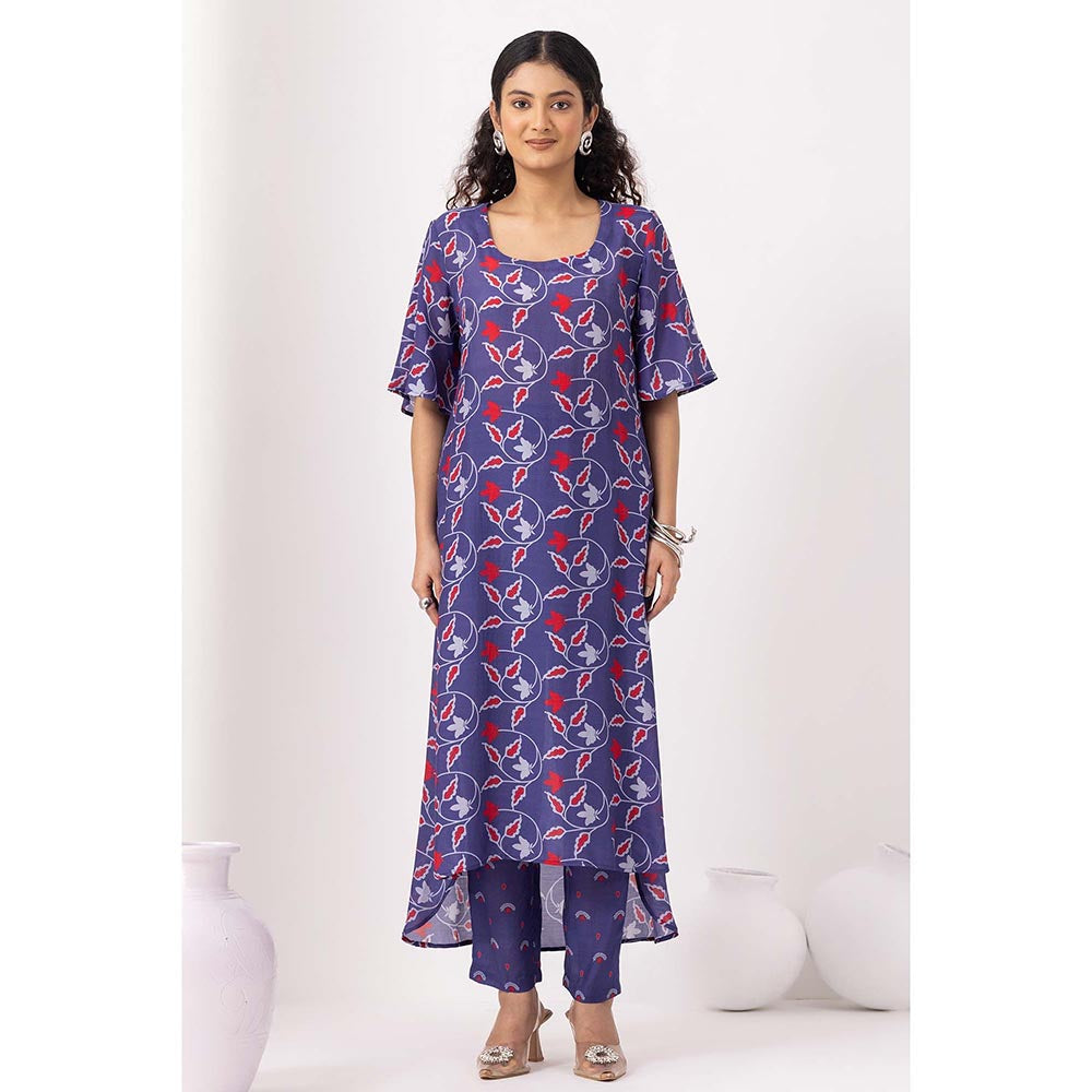 Thee Modern Roots Autumn Ink Blue Kurta with Pant (Set of 2)