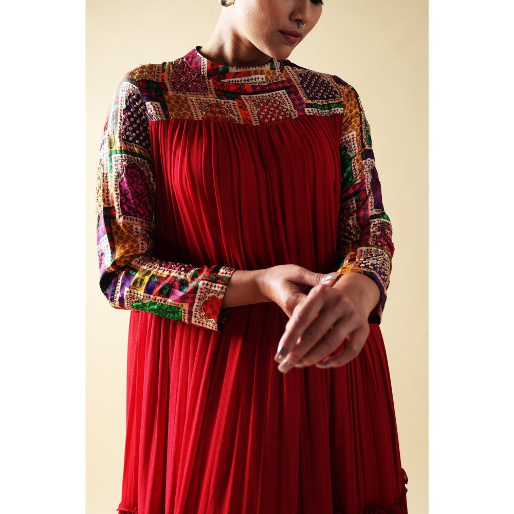 Description : This Maxi Dress Showcases A Stunning Jharokha Print, Adding A Touch Of Traditional Charm And Visual Interest To Your Wardrobe. Detailed Hand Embroidery On The Entire Print Enhances The Dress, Highlighting Skilled Craftsmanship And Elevating Its Overall Aesthetic. The Full Sleeves Provide A Sophisticated Look While Offering Comfort And Coverage, Making It Perfect For Various Occasions. Designed With A Flowing Silhouette, This Maxi Dress Allows For Ease Of Movement, Ideal For Festive Celebrations, Parties And Casual Outings. Garment Has An Ease Of 2 Inches Compared To Standard Size Chart Measurements Features A Generous Margin Of 2-3 Inches For Future Adjustments. Model Size: Height Is 5 10 And Is Wearing Size Material: Pure Silk, Silk Georgette, Santoni. Of Components: 1
