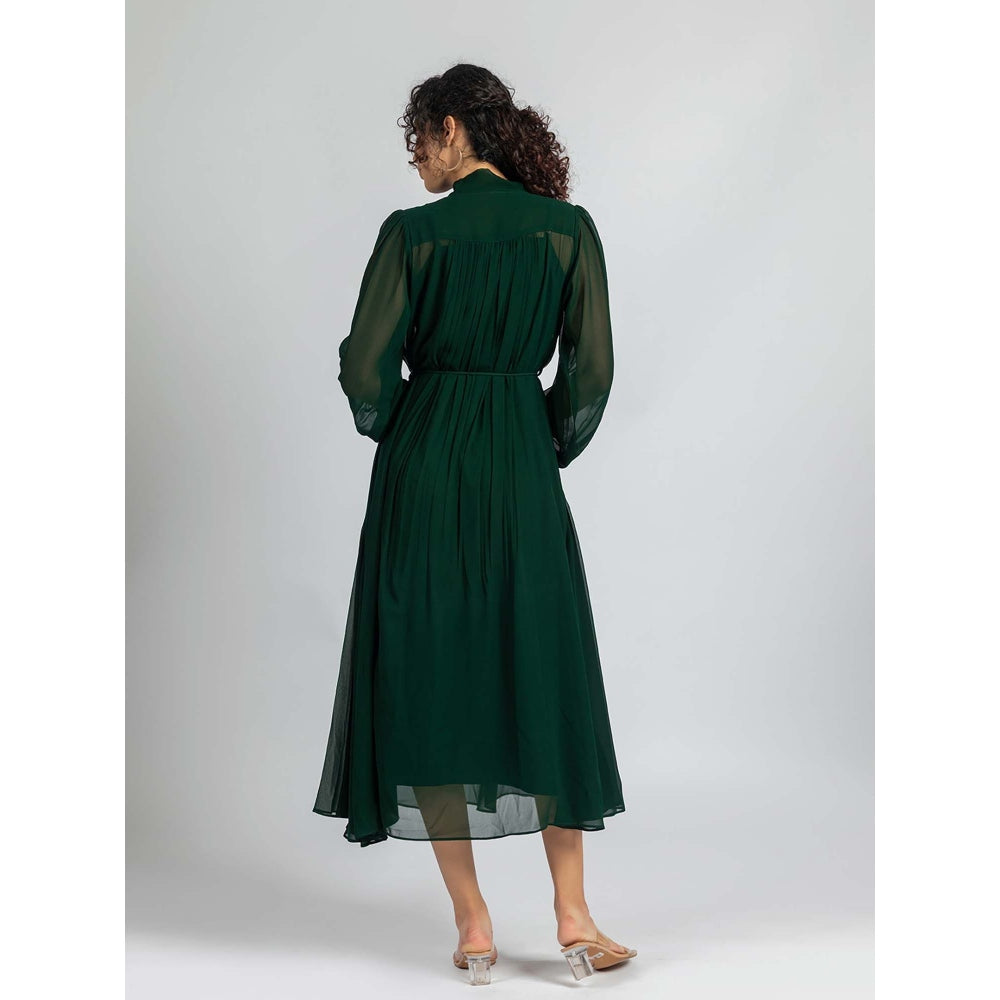 Torsha Green Bow and Flared Dress with Inner and Belt