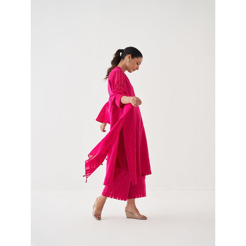 Vaaya Pink Pure Handwoven Silk Kurta with Pant and Scarf (Set of 3)