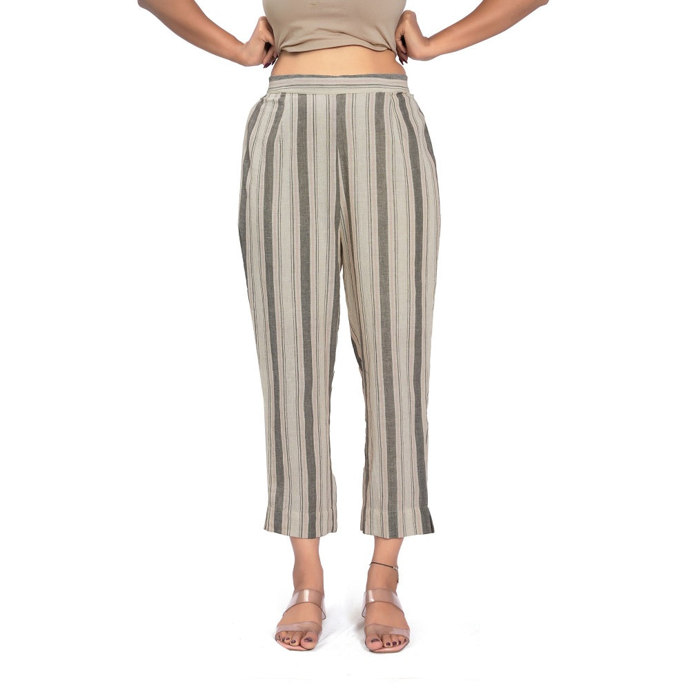 Description : Featuring Sustainable Grey Striped Handloom Cotton Pants with Back Elastic At Waistline