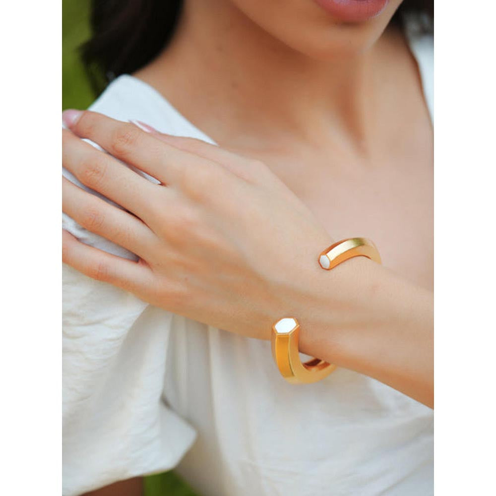 VARNIKA ARORA Hexa White Enamel Gold Cuff