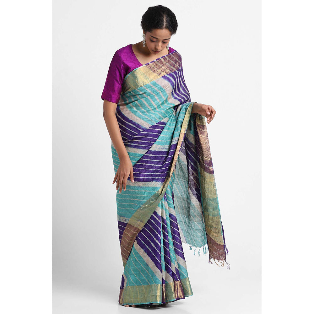 Via East Multicolour Tussar Silk Leheriya Saree with Unstitched Blouse