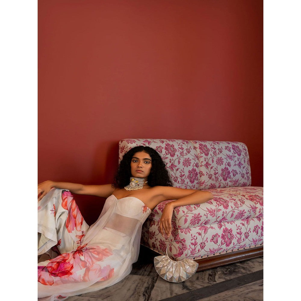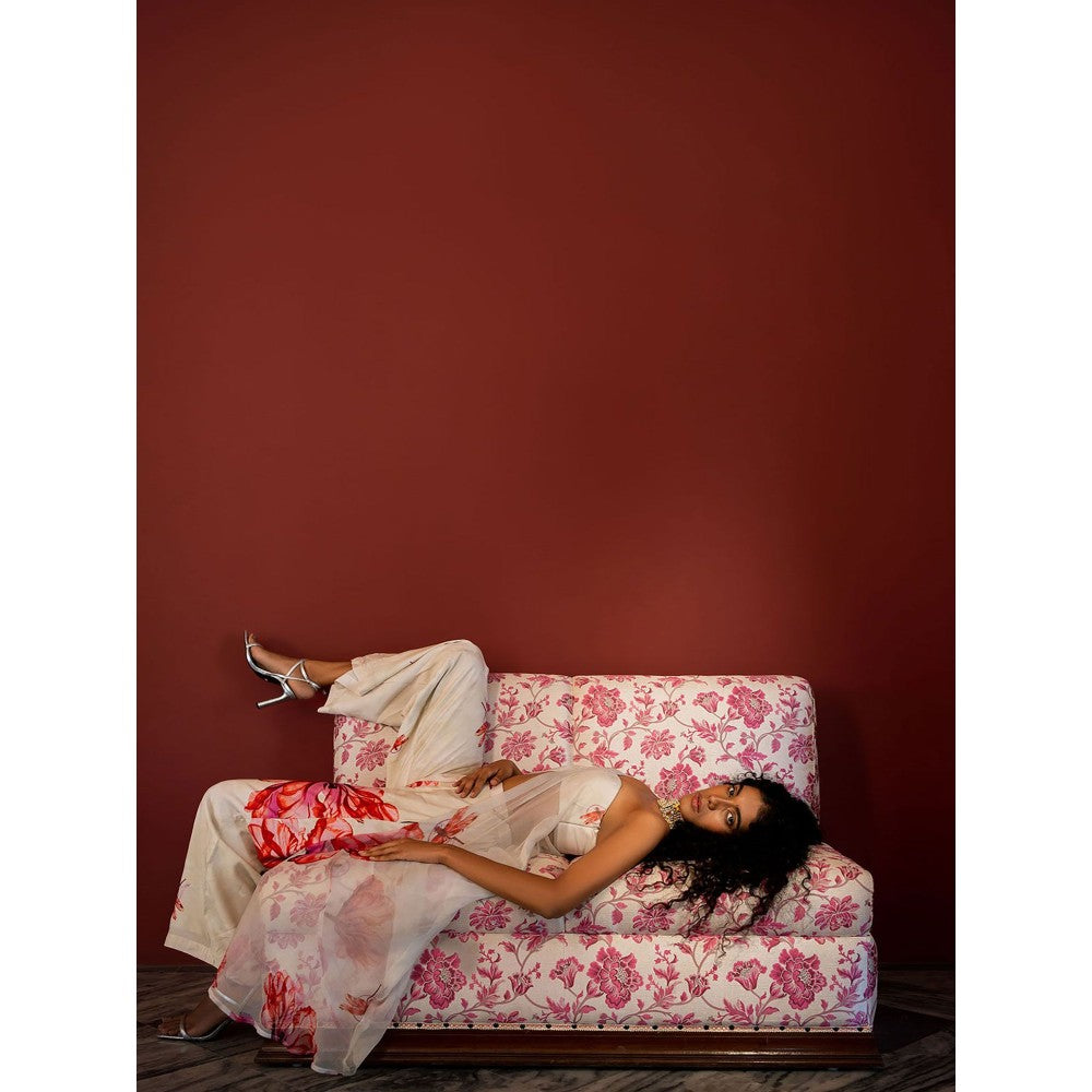 17 : 17 by Simmi Saboo Off White Dragon Fly Tube Knot Flap Slit Kurta with Palazzo (Set of 2)
