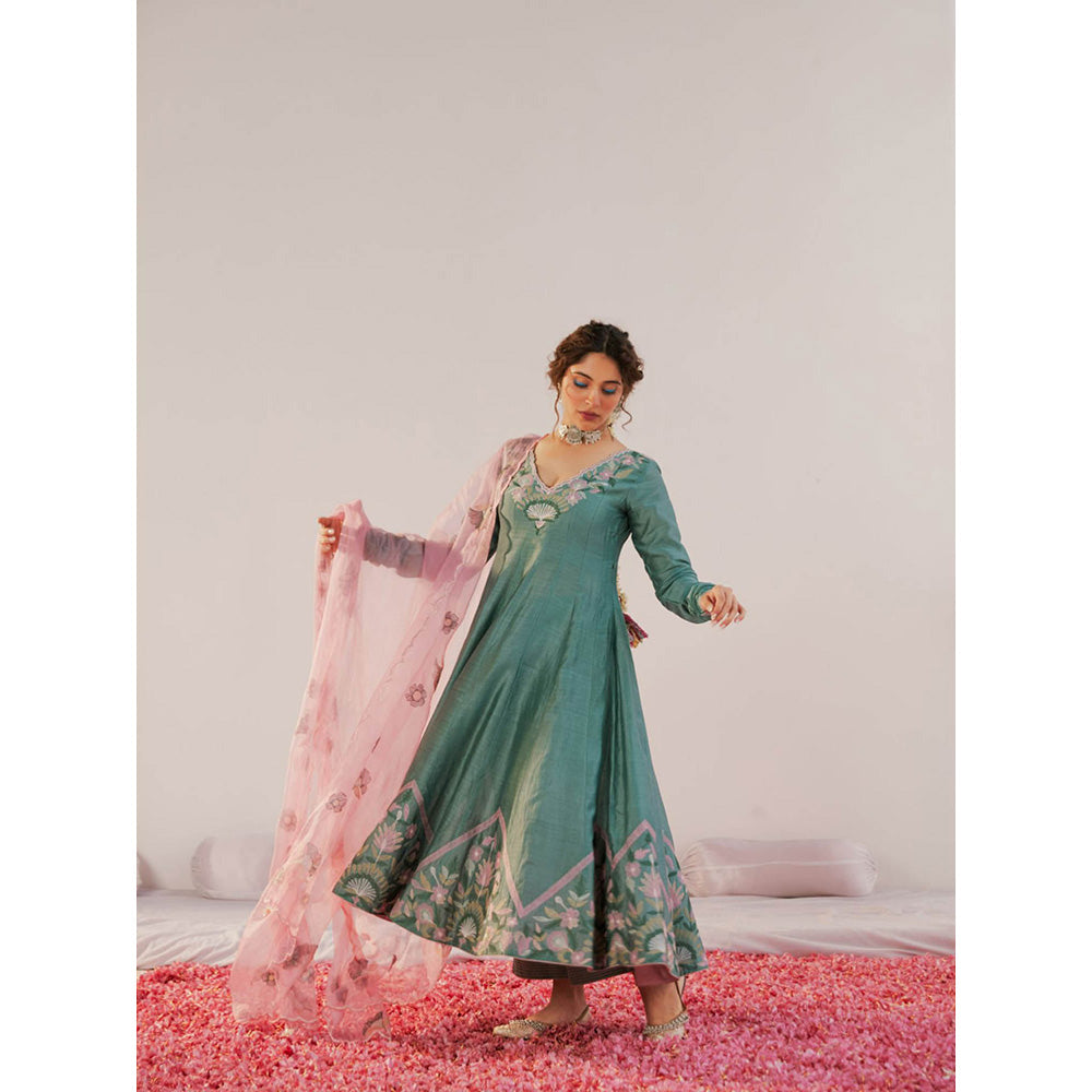 172 Threads Teal Zara Anarkali Kurta Pant & Dupatta (Set of 3)