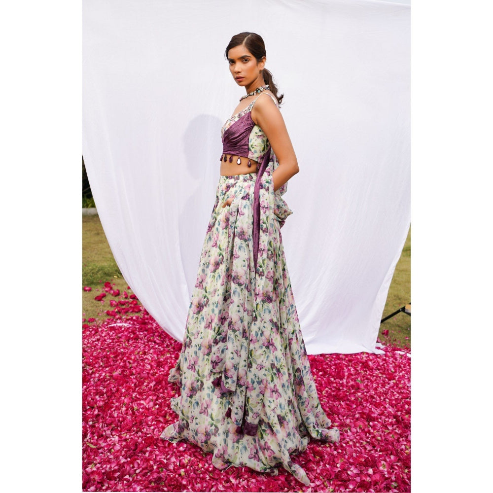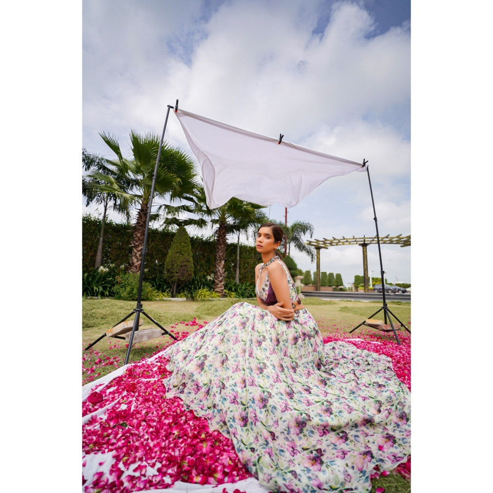 AHI Clothing Multicolor African Floral Lehenga with Bustier and Dupatta (Set of 3)