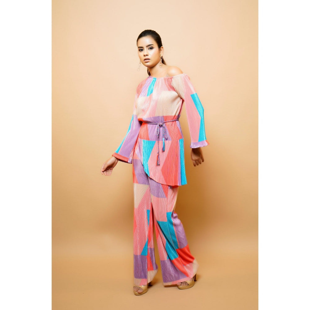 Ahi Clothing Multicolour Crushed Co-Ord with Belt (Set of 3)