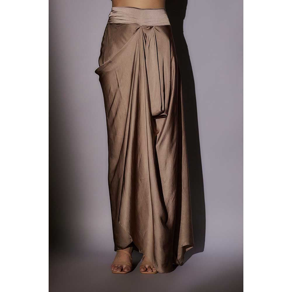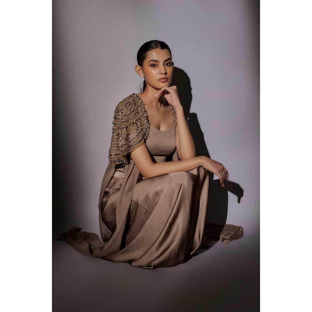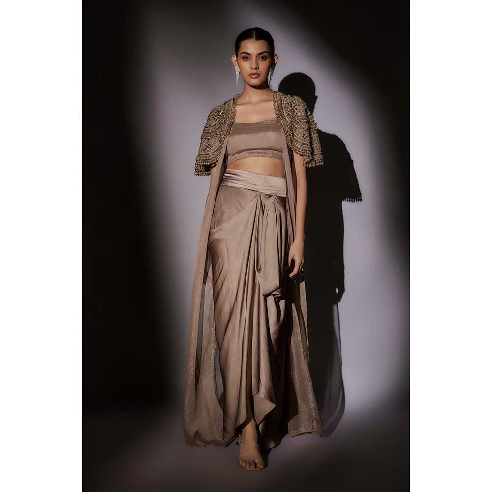 Ajiesh Oberoi Beige Heavy Hand Embroidered Cape with Bustier and Skirt (Set of 3)