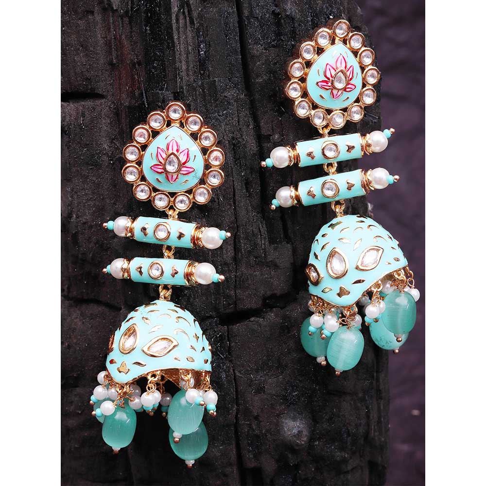 Akulya Jewels Turquoise and Pink Minakari Kundan Earrings
