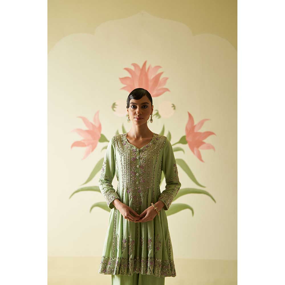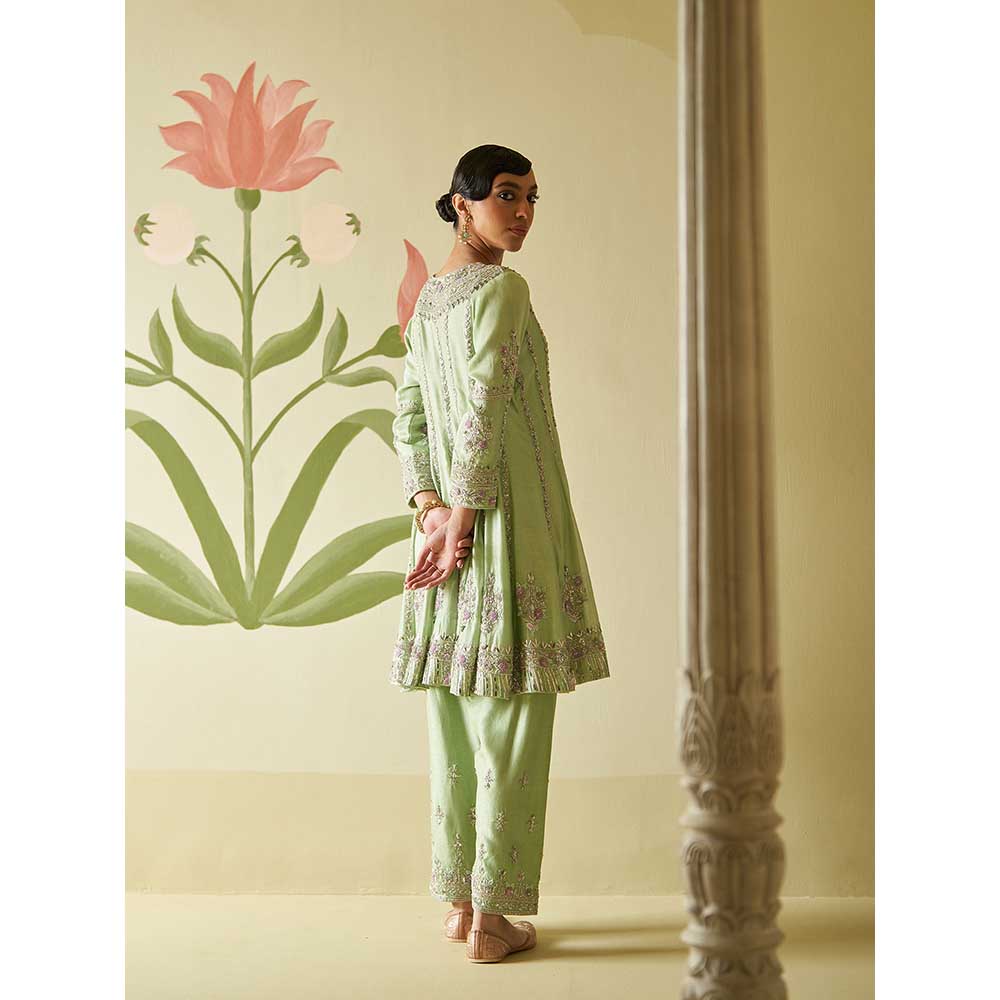 ANGAD SINGH Mint Green Chanderi Silk Anarkali Kurta with Pant & Dupatta (Set of 3)