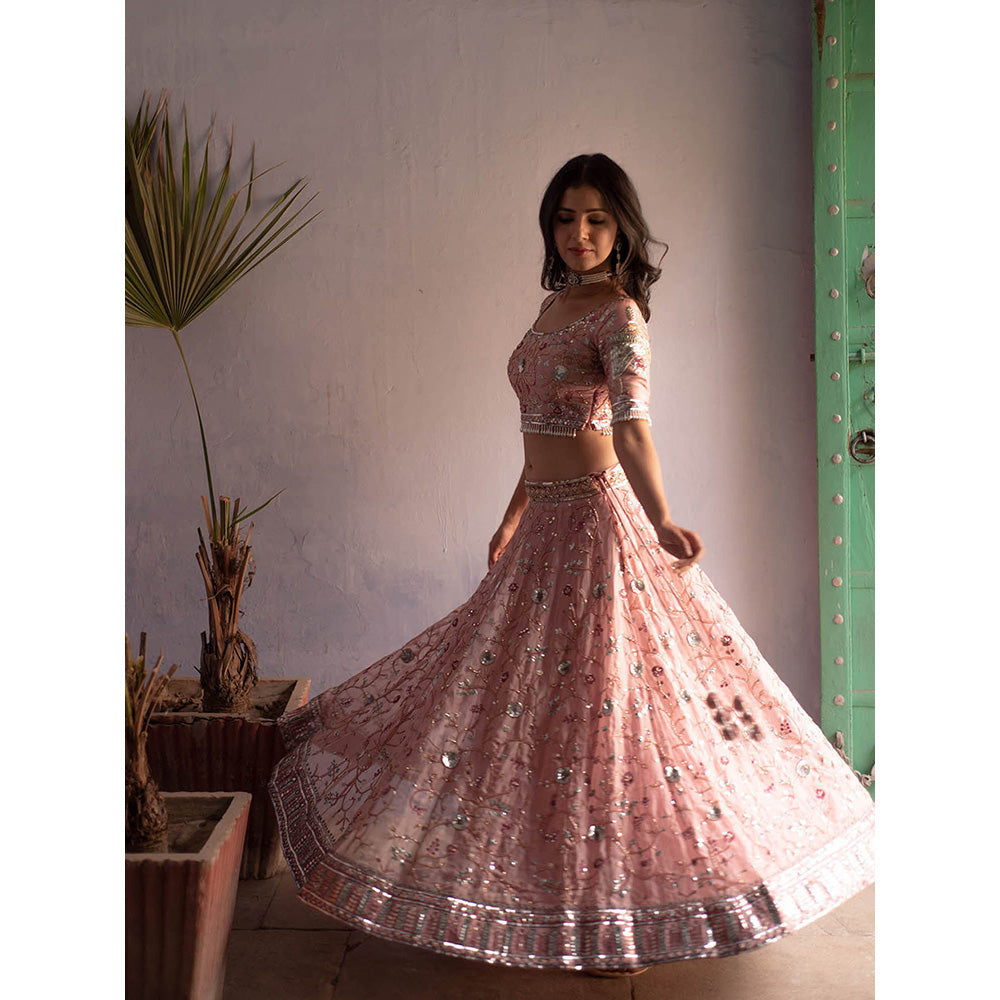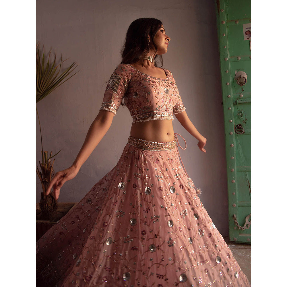 Apeksha Jain Label Onion Pink Lehenga with Blouse and Dupatta (Set of 3)