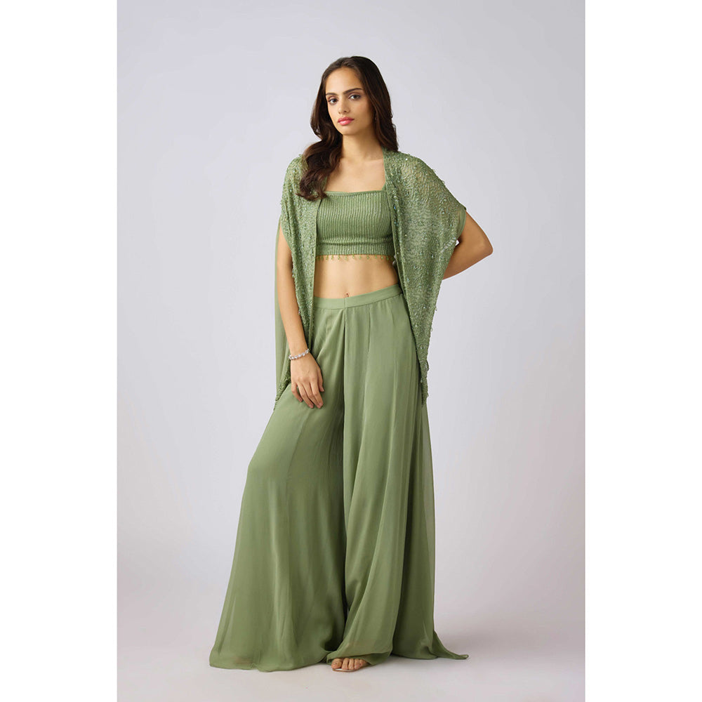 Green Georgette Embroidered Cape with Blouse and Sharara (Set of 3)