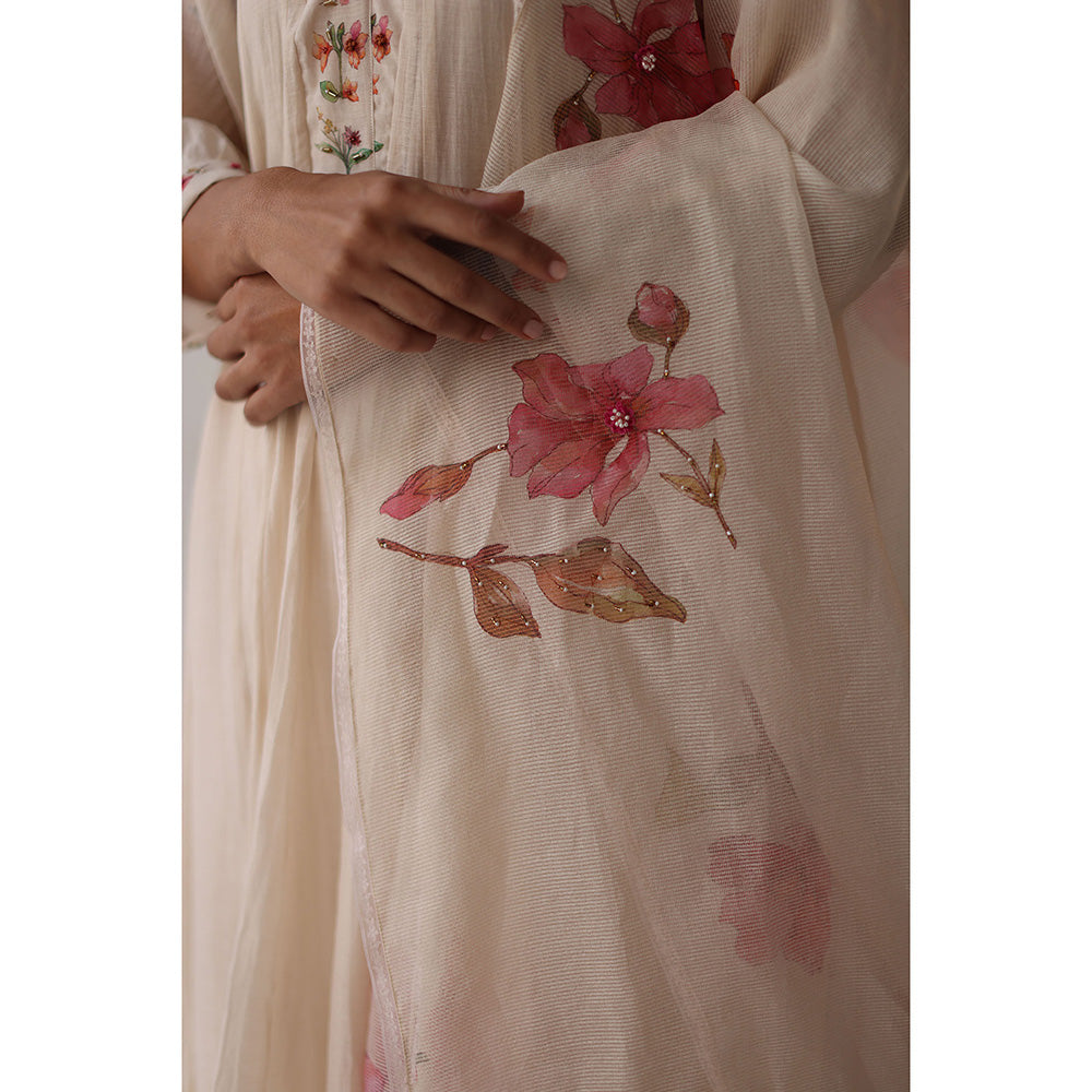 Ivory Nargis Kurta with Pant with slip and Dupatta (Set of 4)