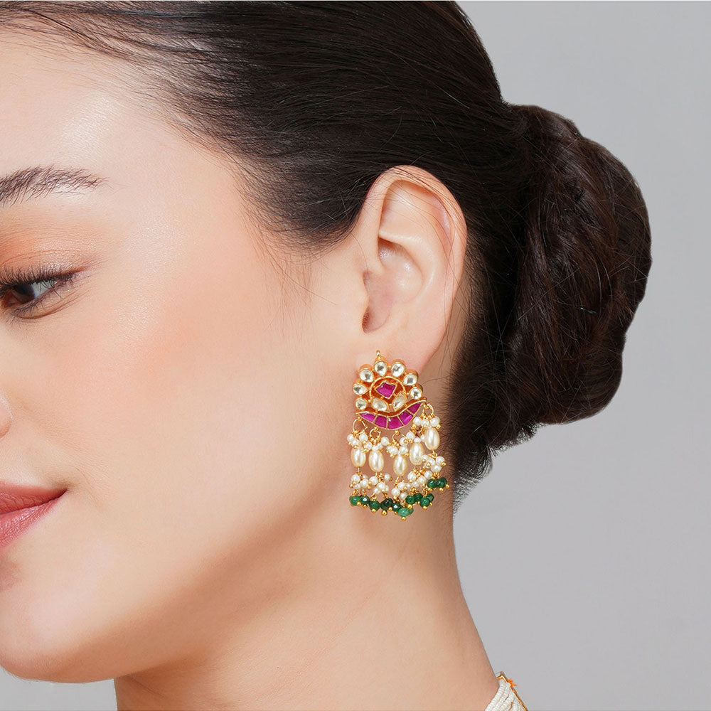 Beryachi Gold Finish Multi-Colored Pachi Kundan Polki Choker Necklace & Earrings Set