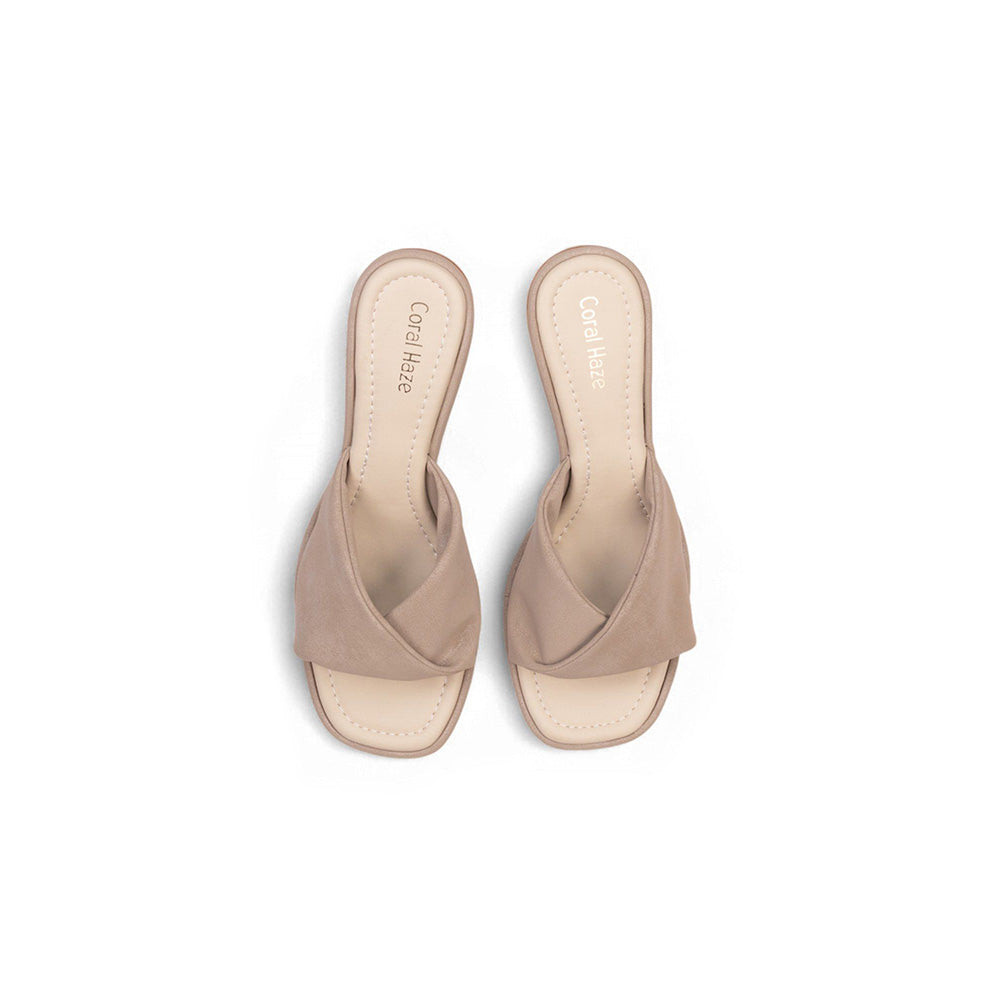 Coral Haze Brittany Taupe Metallic Twisted Strap Heels Sandals
