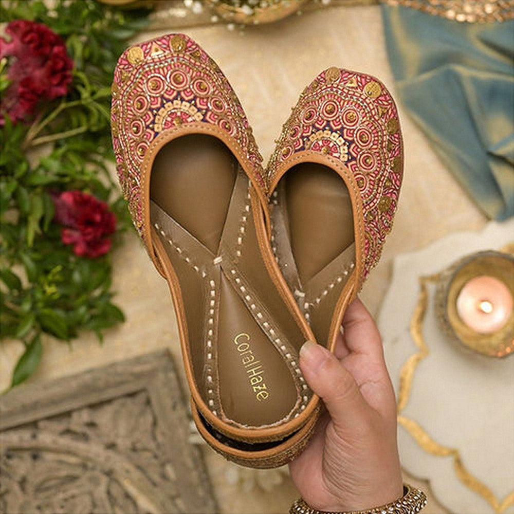 Description : Elevate your outfit with these multi-color juttis from Coral Haze. Crafted from leatherette with rubber sole, this stylish pair offers both comfort and durability.