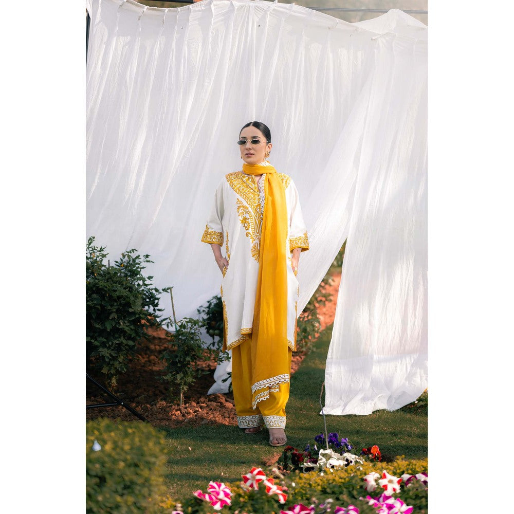 Description : A Beautifully Handcrafted White Khadi Cotton Phiran, Paired With A Mustard Khadi Cotton Salwar And A Delicate Organza Dupatta, Featuring Intricate Kashmiri Aari Embroidery For An Elegant And Timeless Look. Embroidery: Aari Thread Embroidery phiran Fabric: Khadi Cotton salwar Fabric: Khadi Cotton dupatta Fabric: Organza colour: White & Mustard no. Of Components: 3Components: Phiran, Salwar & Dupatta delivery: Pan India production Time: 15 - 20 Days care: Dry Clean Only