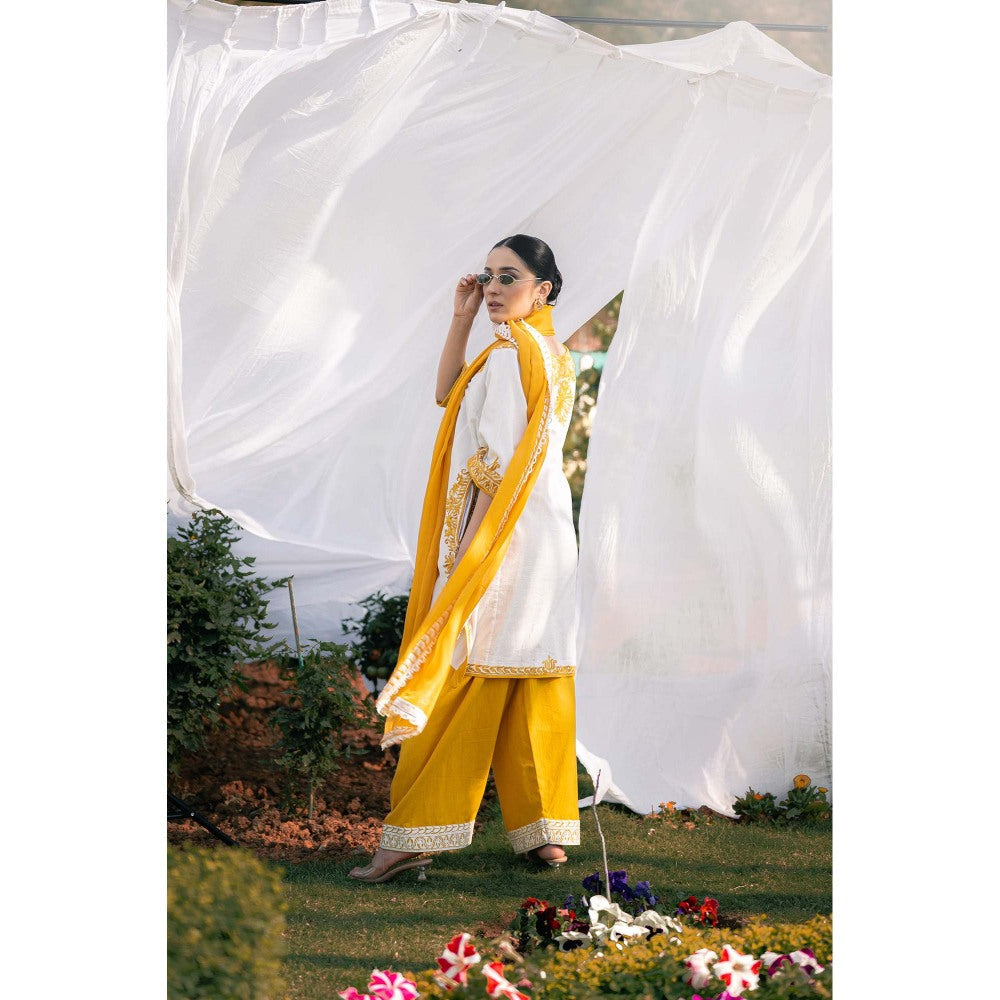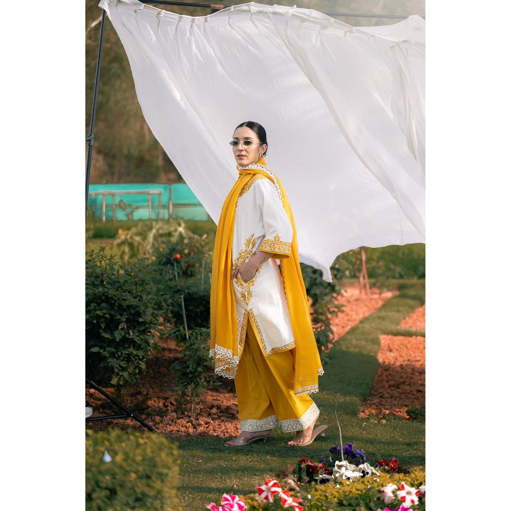 Daljit Sudan Mustard Cotton Kurta with Pant and Dupatta (Set of 3)