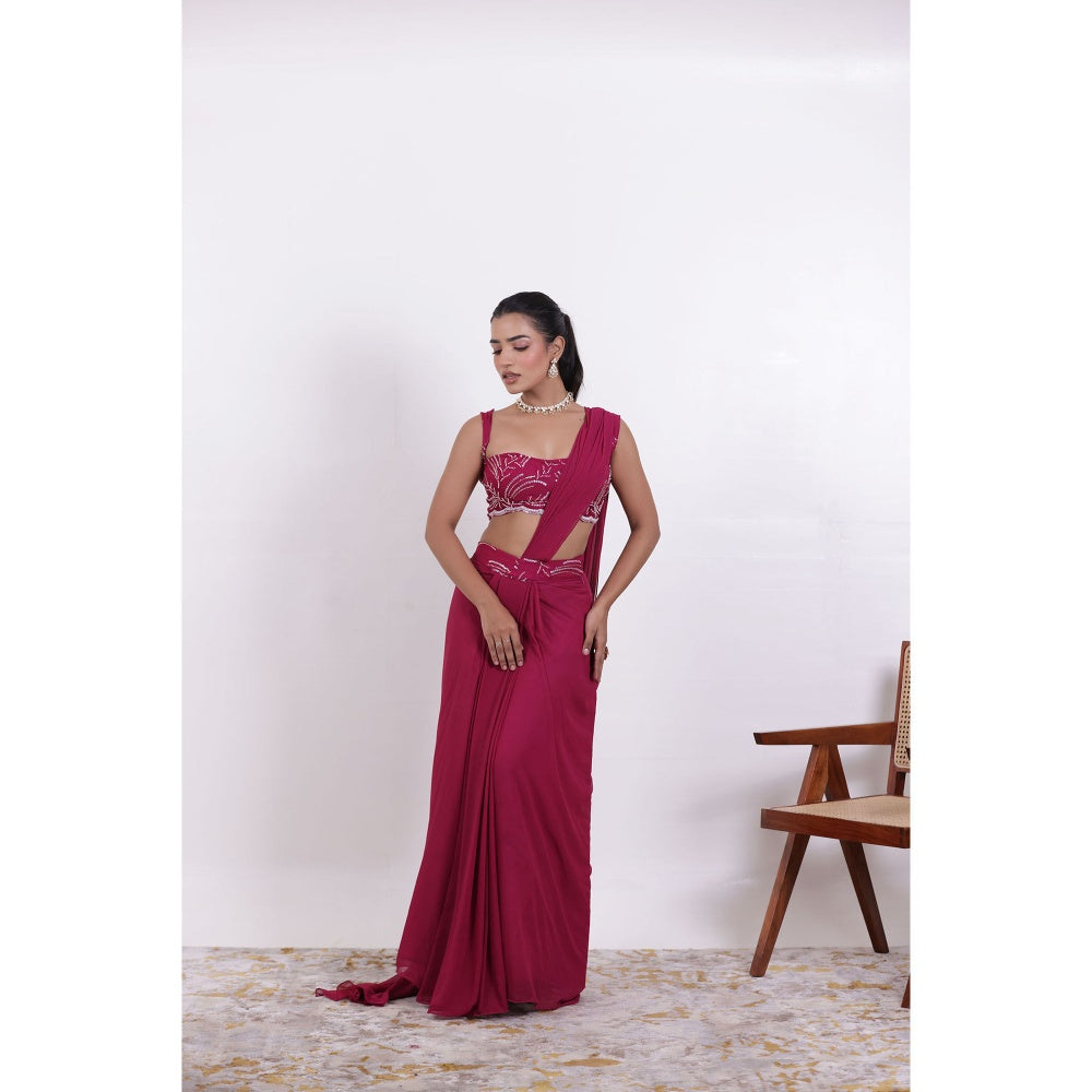 Alina Cherry Pink Pre Draped Saree with Stitched Blouse