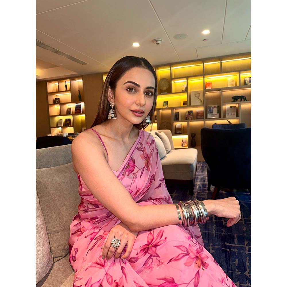DOHR INDIA Aliya Pink Floral Printed Organza Saree with Unstitched Blouse