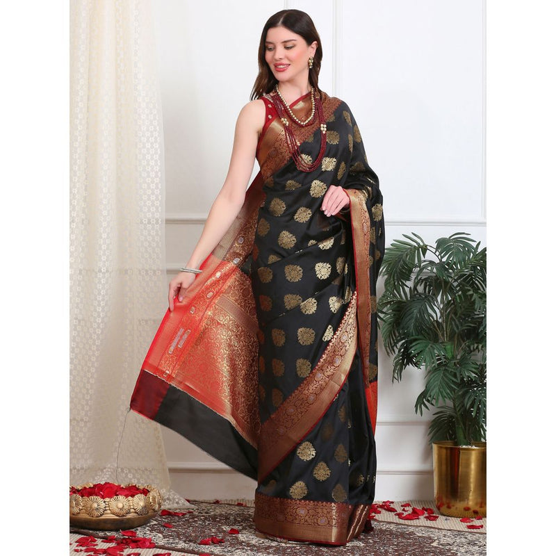 Dress & Dazzle Black Katan Silk Saree with Unstitched Blouse