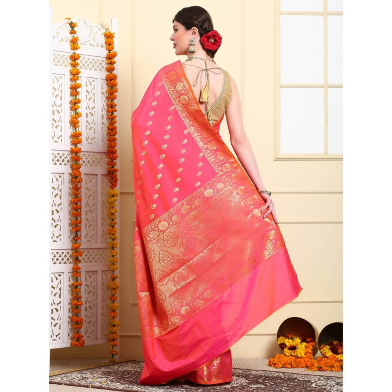 Women Neon Pink Katan Silk Saree with Unstitched Blouse