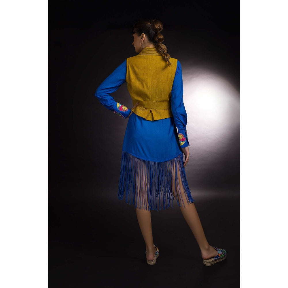 Firki by Sweta Blue Fringe Jacket with Dress (Set of 2)