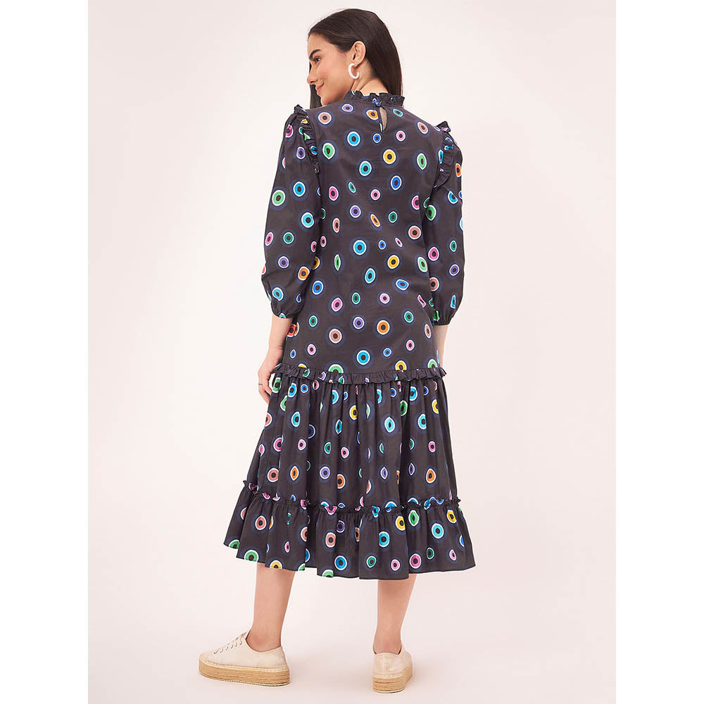 First Resort by Ramola Bachchan Black Evil Eye Frill Midi Length Dress