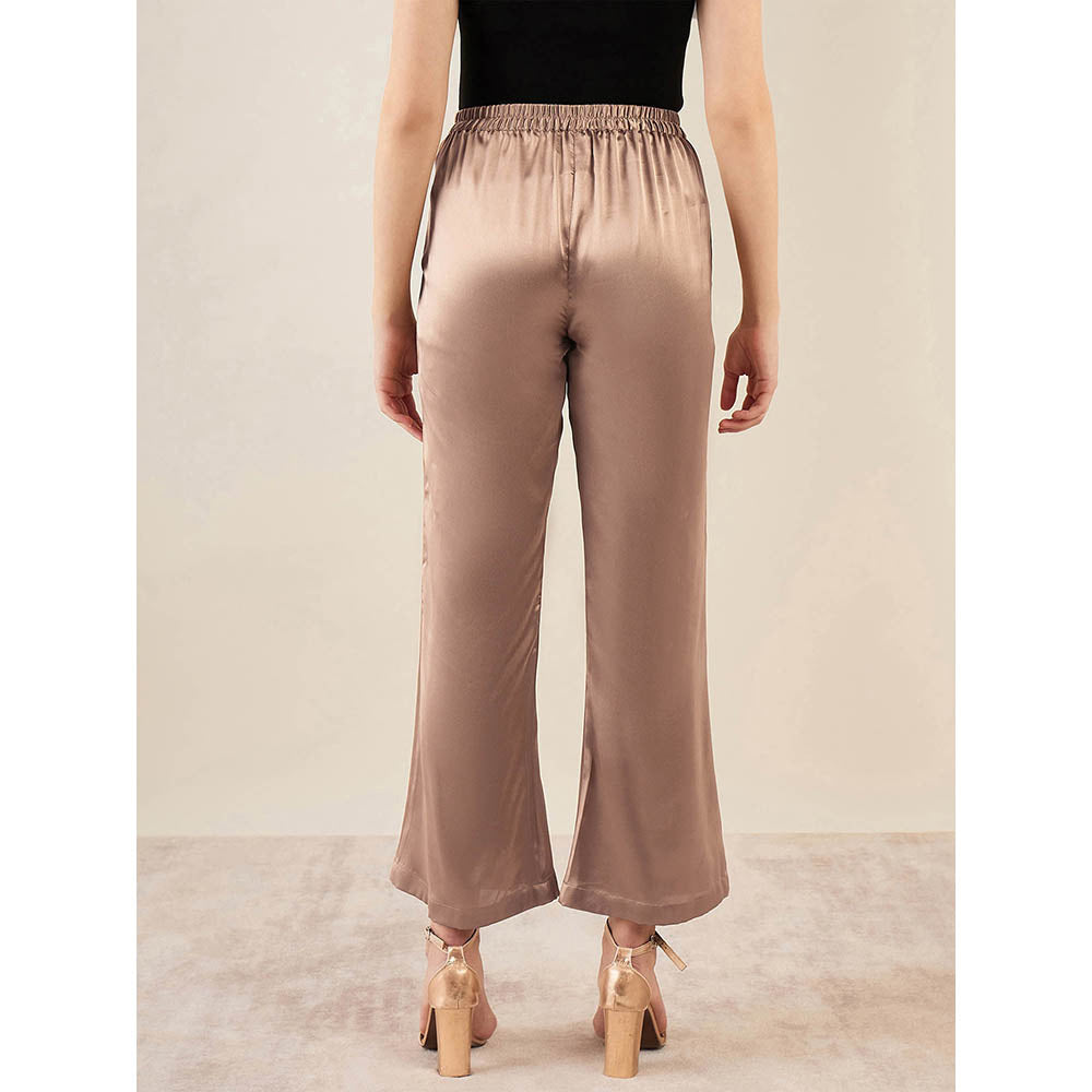 First Resort by Ramola Bachchan Hazel Brown Bell Bottom Satin Pant