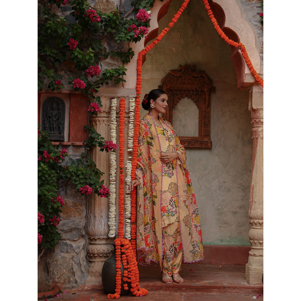 Beige Sarin Kurta with Pant and Dupatta (Set of 3)
