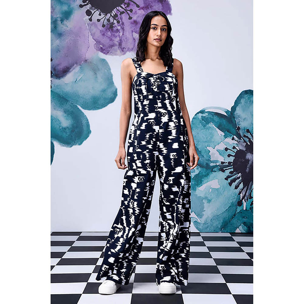 Black Cotton Square Neck Abstract Jumpsuits