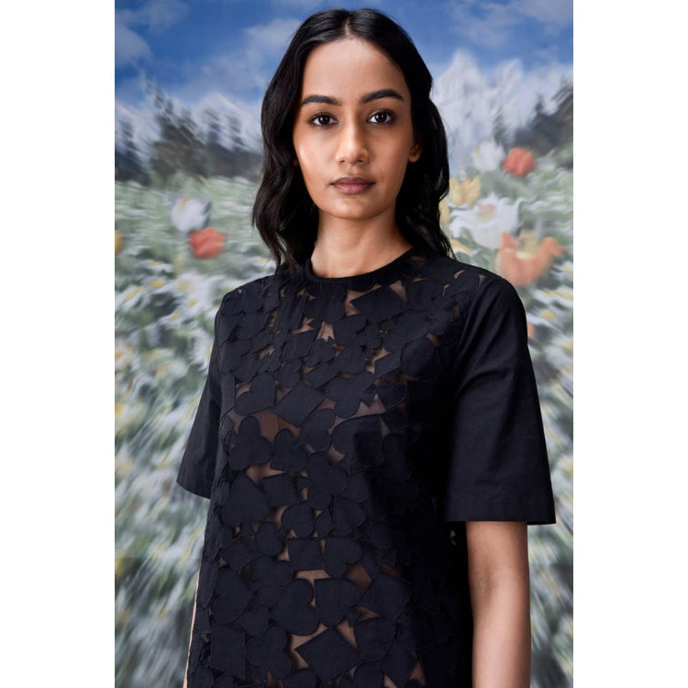 Elevate Your Wardrobe With Our Cutout Embroidery Dress In Black, Monochromatic Cut-Out Applique Inspired By The Motifs Of Playing Cards Is Craftsmanship For Modern Living.