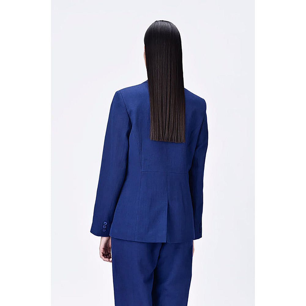 Linen Jacket with Constructed Darts - Navy Blue
