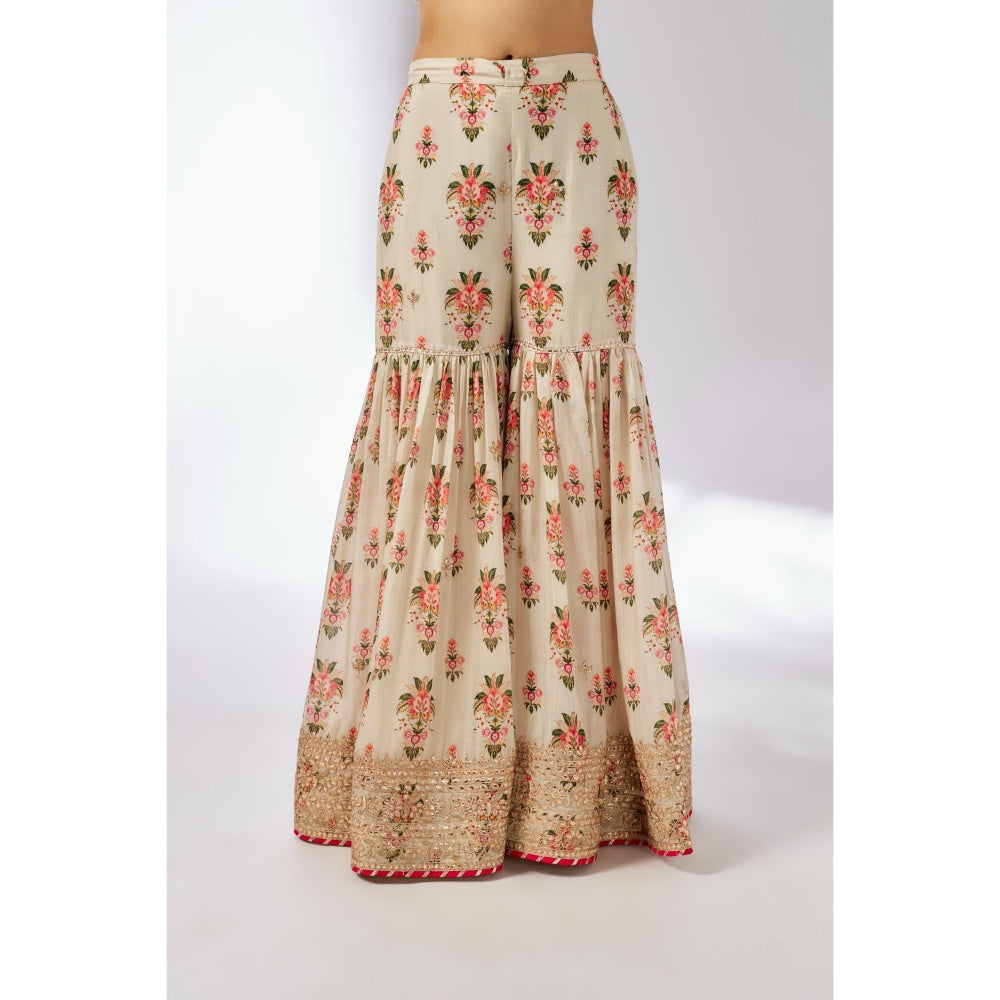 Gopi Vaid Ivory Sadhna Sharara with Kurta and Dupatta (Set of 3)