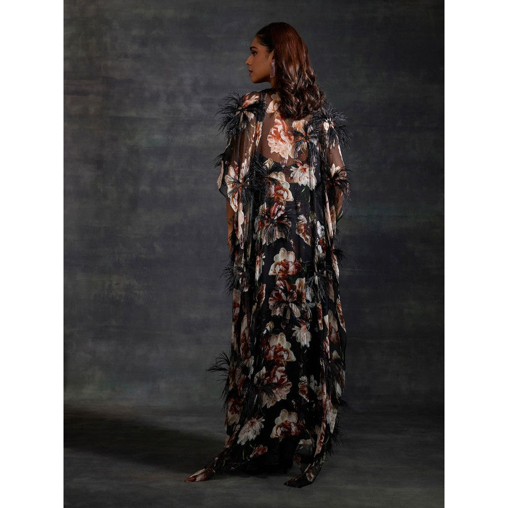 Description : Blouse-printed blouse , Cape- feather crinkle ciffion feather cape and Skirt-waist band drape solid skirt. Tailored to sartorial perfection from premium quality fabric, it assures a soft and soothing touch against the skin. The exquisite silhouette adds to its appeal.