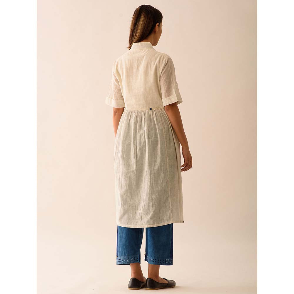 Description : Enhanced with a surplice neck and tie-up details, this beige handwoven cotton kurta from Jayati Goenka is a must-have in your collection. Team this kurta with a pair of wide-leg bottoms and high heels to complete the look.