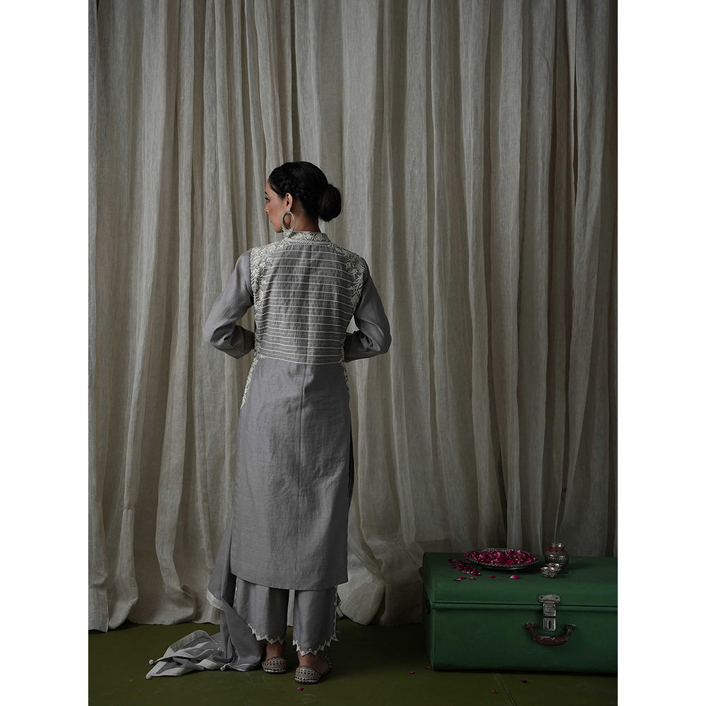 Kanika Sharma Grey Chanderi Silk Pearl and Resham Embroidered Palazzo (Set of 3)