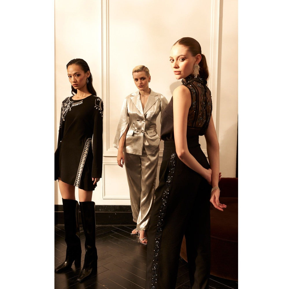 Description : Introducing our 'Jade' dress, a stunning stone work masterpiece in classic black. This dress exudes an air of timeless elegance, adorned with intricate stone detailing that adds a touch of sophistication and allure to your look. It's the perfect choice for a special occasion that demands both grace and style.