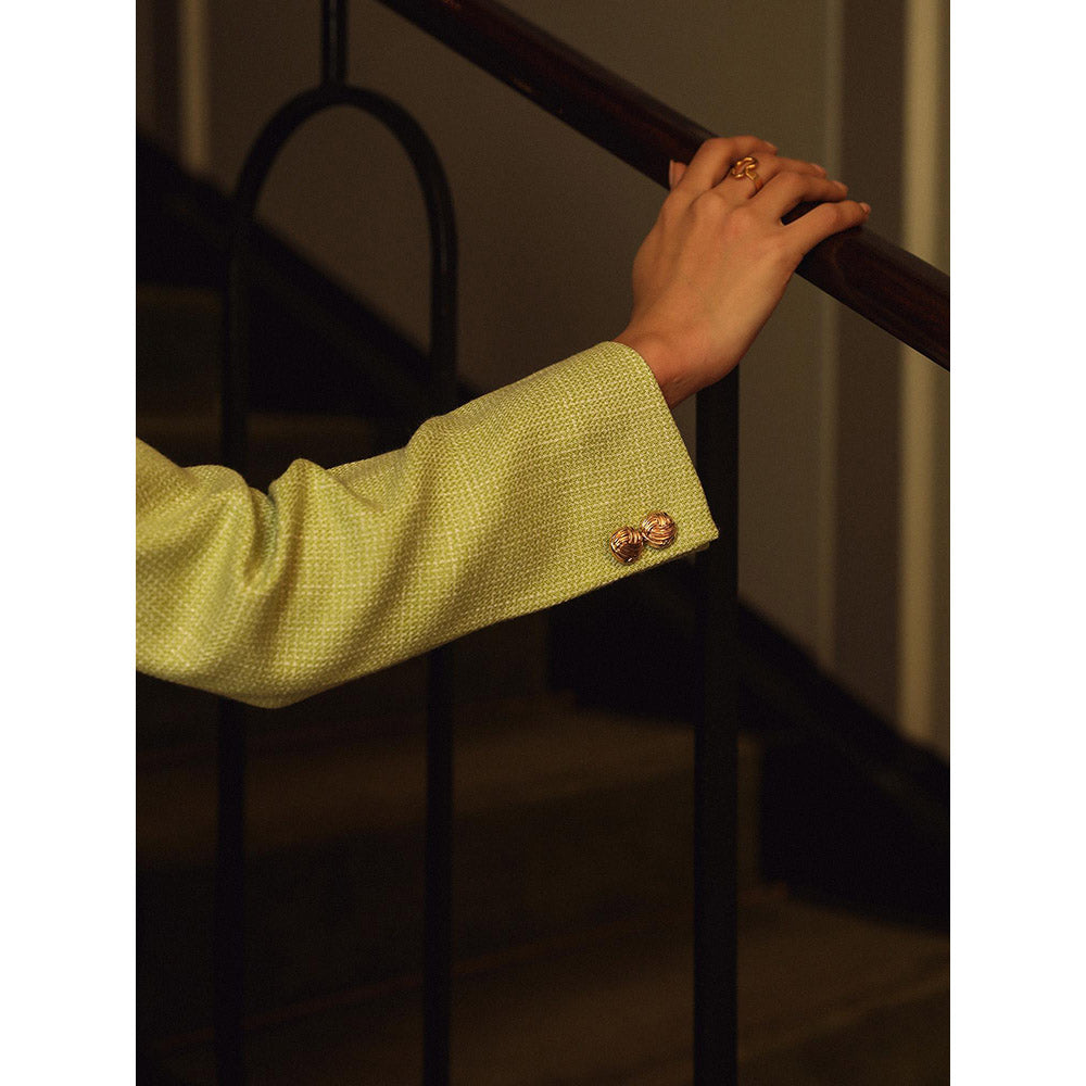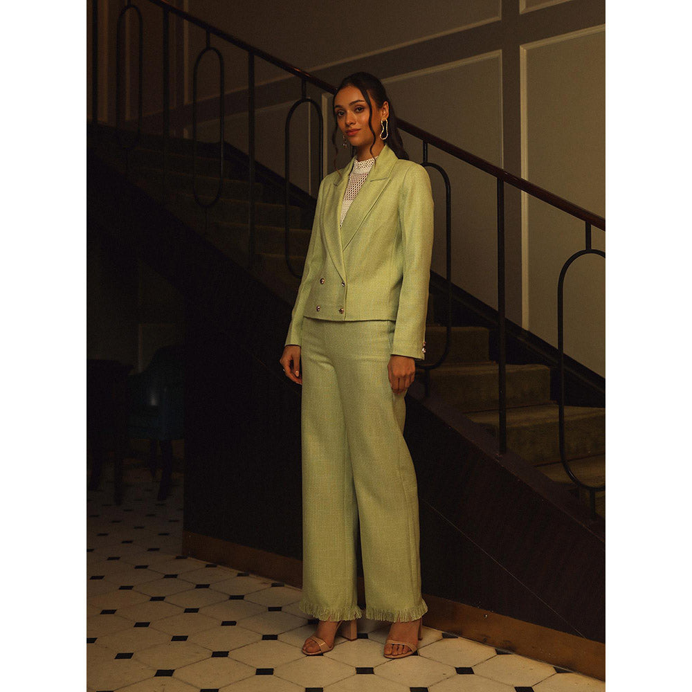 Label Deepika Nagpal Green Textured Kate Top with Blazer and Pant (Set of 3)