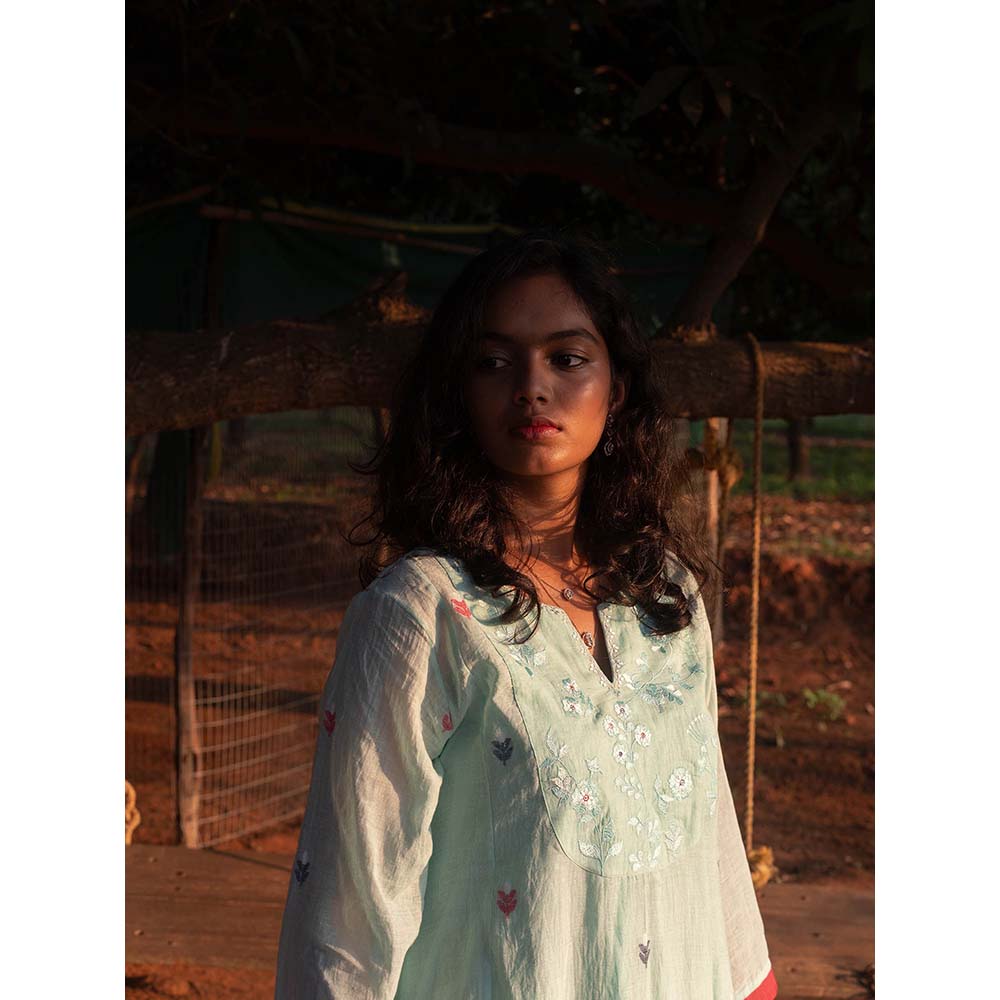 Label Earthen Aqua Blue Yoke Hand Embroidery Detailing Kurta and Trouser (Set of 2)