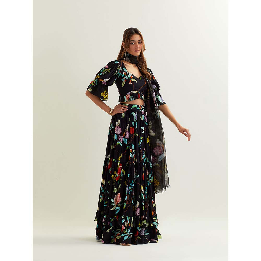 Label Earthen Black Canupus Skirt with Blouse and Dupatta (Set of 3)