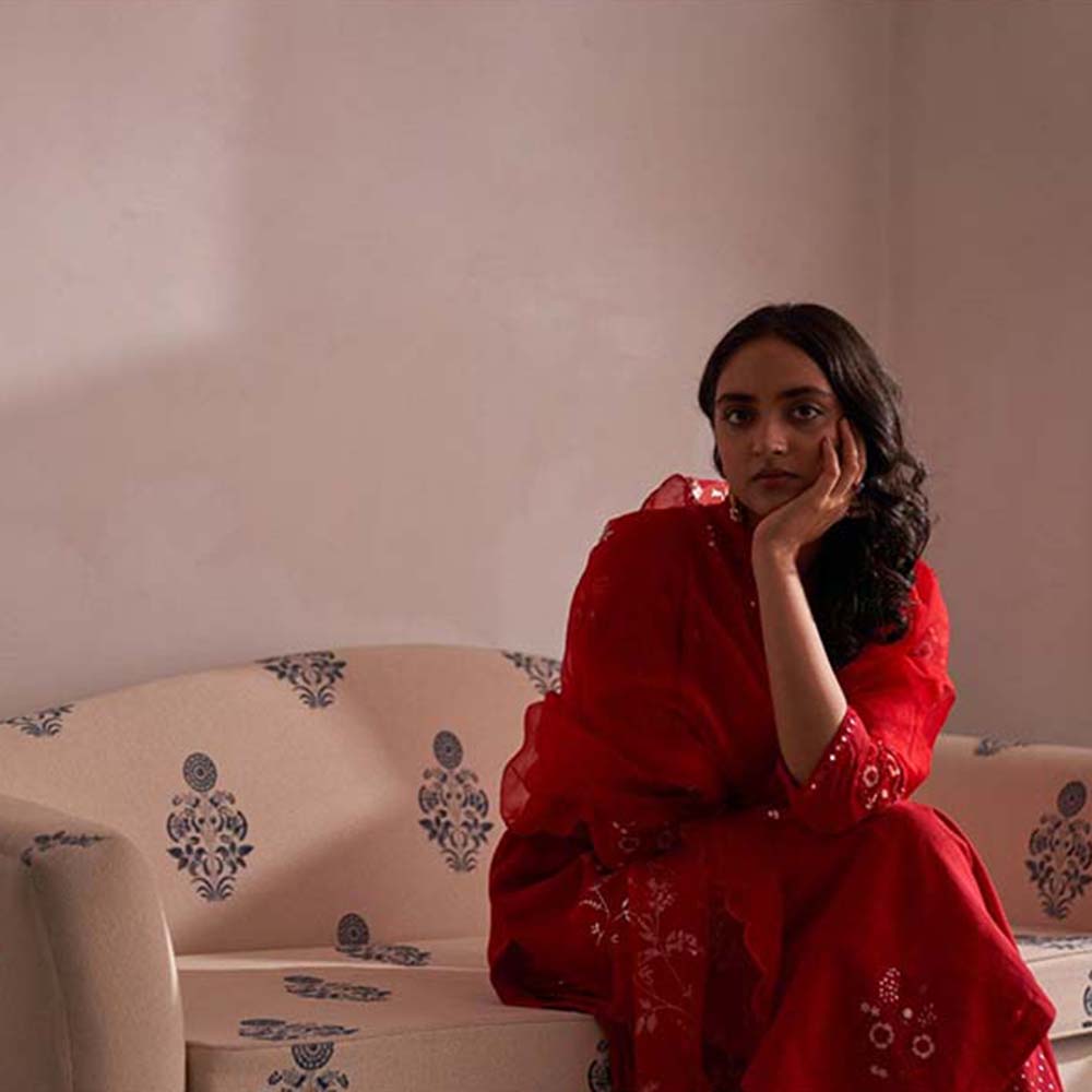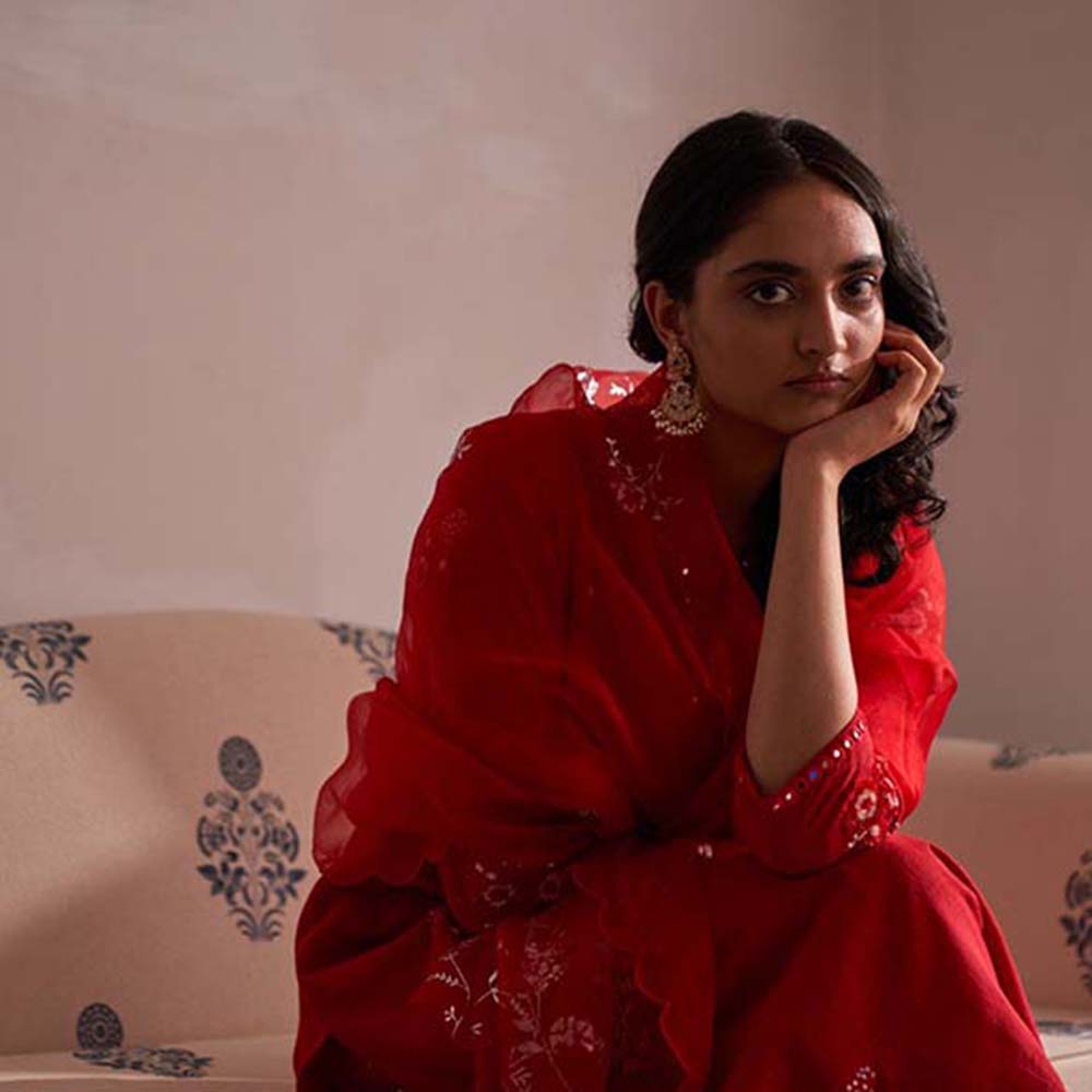 Label Earthen Laal Guchha Sitara Kurta Pant with Dupatta (Set of 3)