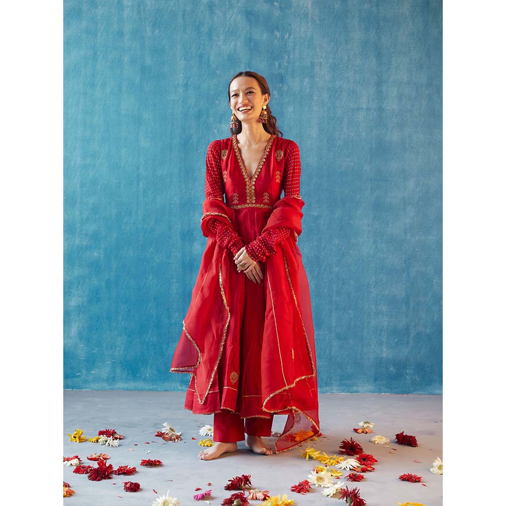 Label Earthen Nisha Kali Kurta with Pant & Dupatta (Set of 3)
