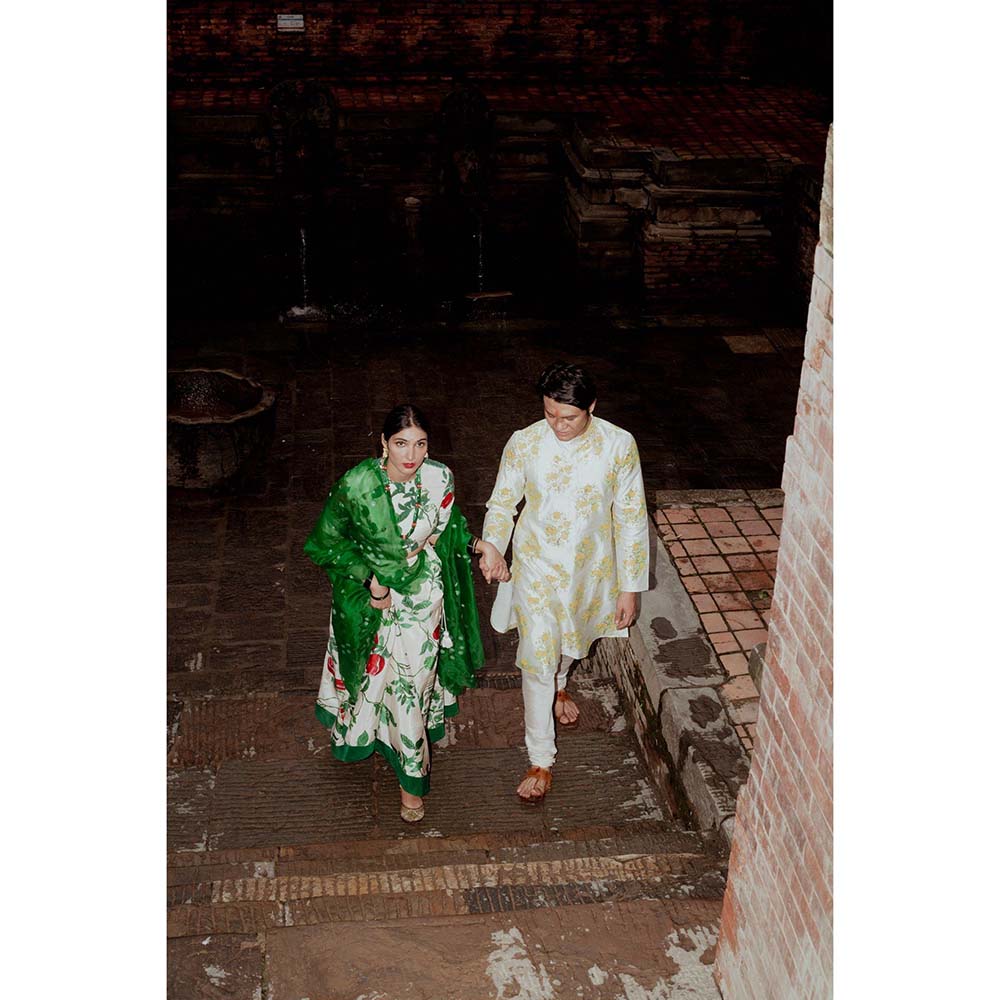 Label Earthen Ramri Printed Lehenga Embellished Blouse with Dupatta (Set of 3)
