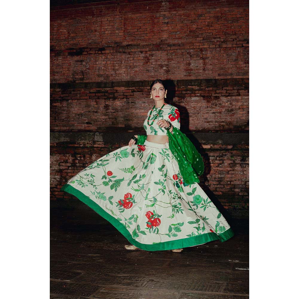 Ramri Printed Lehenga Embellished Blouse with Dupatta (Set of 3)