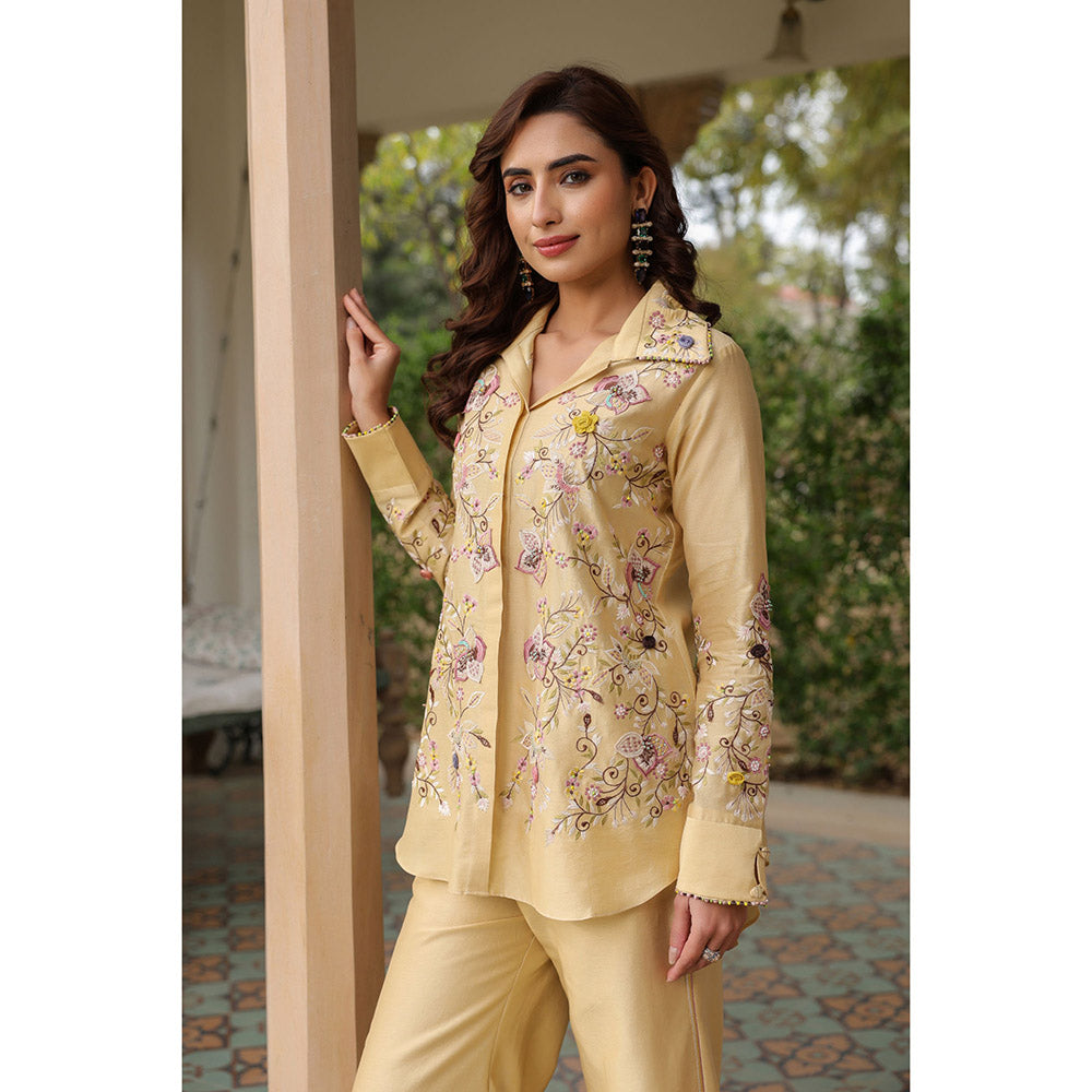 Label Niti Bothra Beige Gulzar Jaal Collar Neck Embroidered Co-Ord (Set of 2)